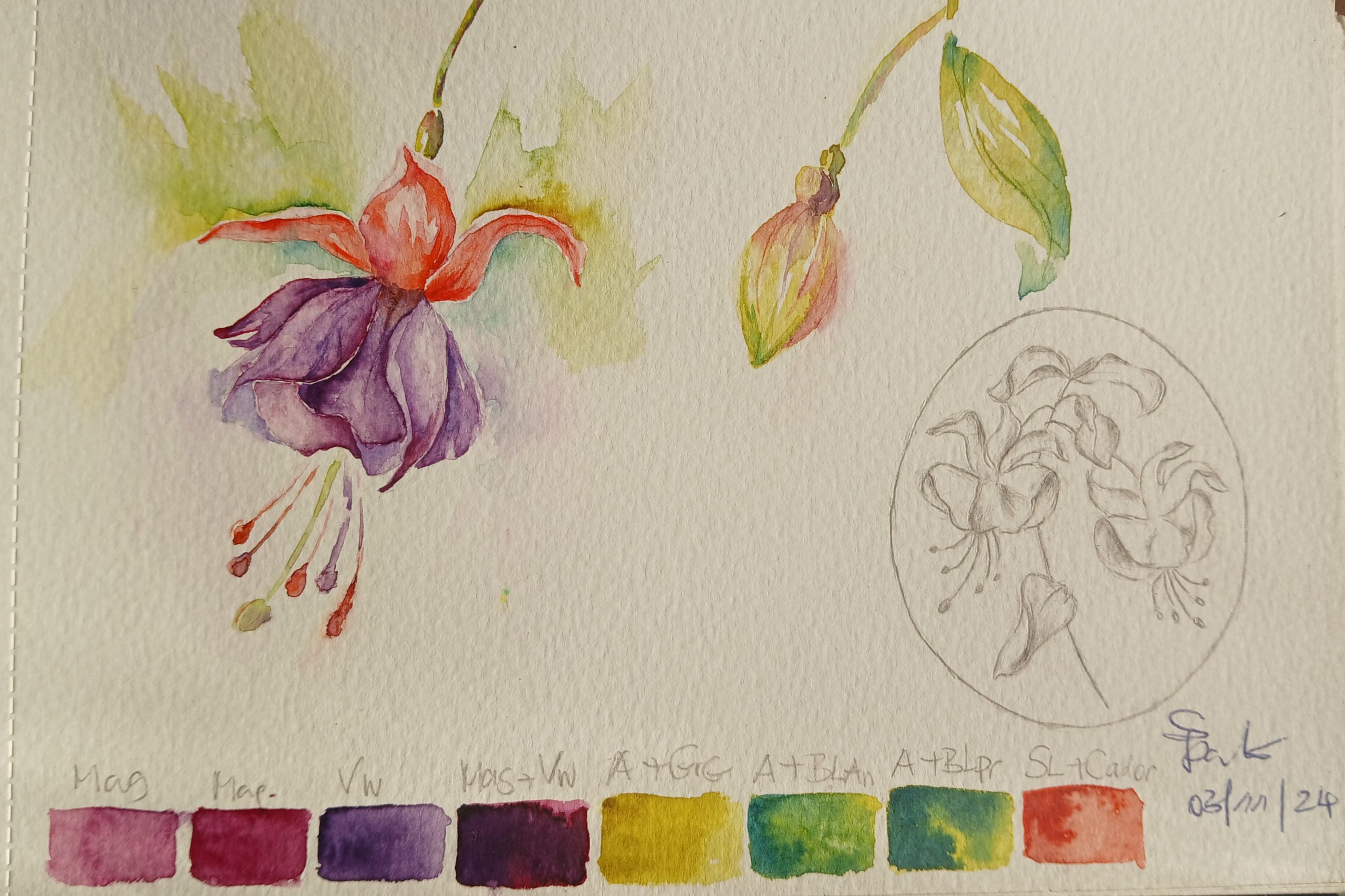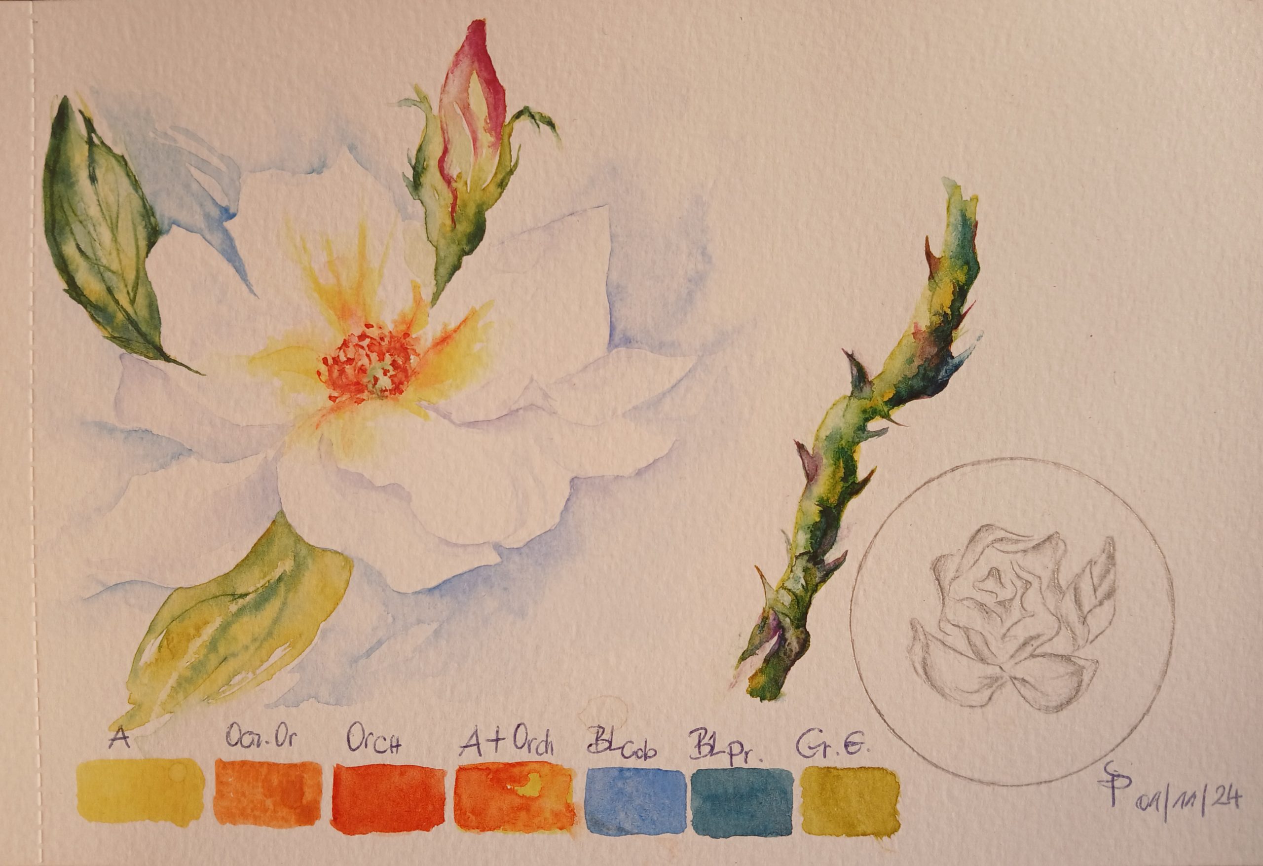 Mes broches brodées au ruban de soie pure, entièrement fait-main par moi-même, créées dans mon atelier en Touraine, région Centre Val de Loire. Mes aquarelles et mes dessins synthétisés illustrent le chemin de la création.